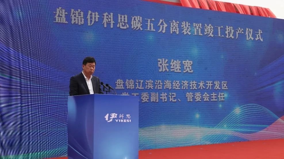 盤錦伊科思總經(jīng)理李云濤邀請嘉賓們登臺參與啟動儀式,它標志著 15 萬噸/年碳五分離裝置榮耀地正式投入運營,亦如璀璨燈塔,象征著盤錦伊科思新材料有限公司踏上嶄新征程的開端。