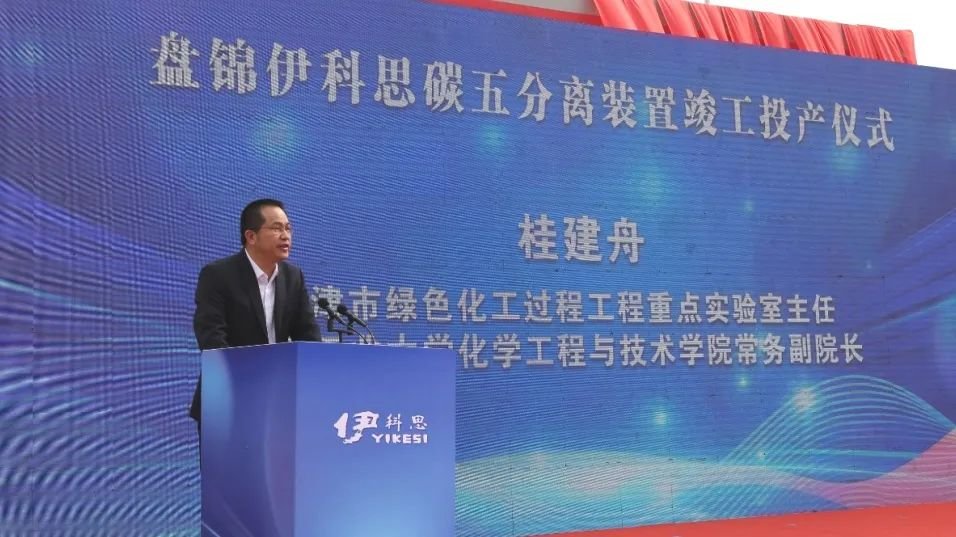 嘉賓代表天津市綠色化工過程工程重點實驗室主任、天津工業(yè)大學化學工程與技術學院常務副院長桂建舟發(fā)表致辭,他向盤錦伊科思表達了誠摯的祝福與美好的祝愿,肯定了企業(yè)在化工新材料領域的積極探索與貢獻。