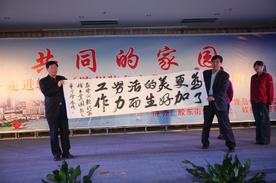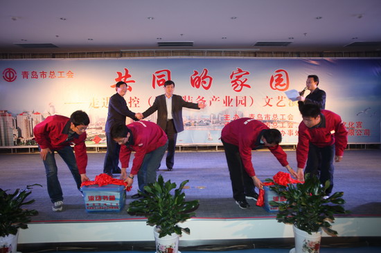 在演出期間,青島市總工會(huì)的領(lǐng)導(dǎo)向軟控員工贈(zèng)送了書箱。據(jù)了解,青島總工會(huì)開展的以提高新市民整體素質(zhì)為主要內(nèi)容的“共同的家園”主題系列活動(dòng),已連續(xù)五年開展了“送演出、送書箱、送講座、送電影、送活動(dòng)”為主要內(nèi)容的“五送”活動(dòng),走進(jìn)廠礦企業(yè)、建筑工地,慰問(wèn)新市民10余萬(wàn)人,極大地豐富和充實(shí)新市民的精神文化生活。