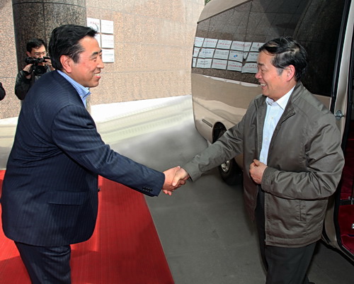 4月28日,國(guó)家工業(yè)和信息化部黨組成員、副部長(zhǎng)楊學(xué)山一行在青島市委常委、副市長(zhǎng)???,四方區(qū)委書記紀(jì)敏,四方區(qū)區(qū)長(zhǎng)張杰等相關(guān)領(lǐng)導(dǎo)的陪同下,到國(guó)家輪胎工藝與控制工程技術(shù)研究中心(簡(jiǎn)稱“中心”)參觀考察。中心主任、公司董事長(zhǎng)袁仲雪,中心副主任、副董事長(zhǎng)張焱等領(lǐng)導(dǎo)熱情接待了楊學(xué)山一行。