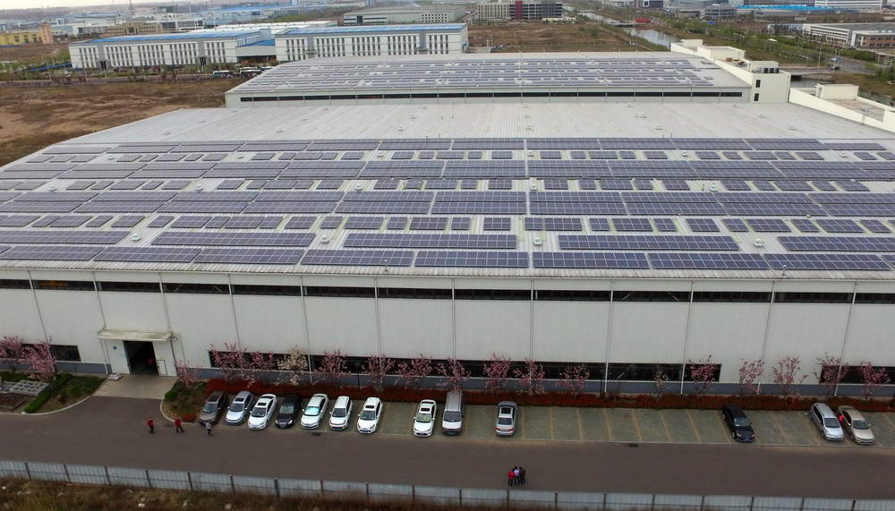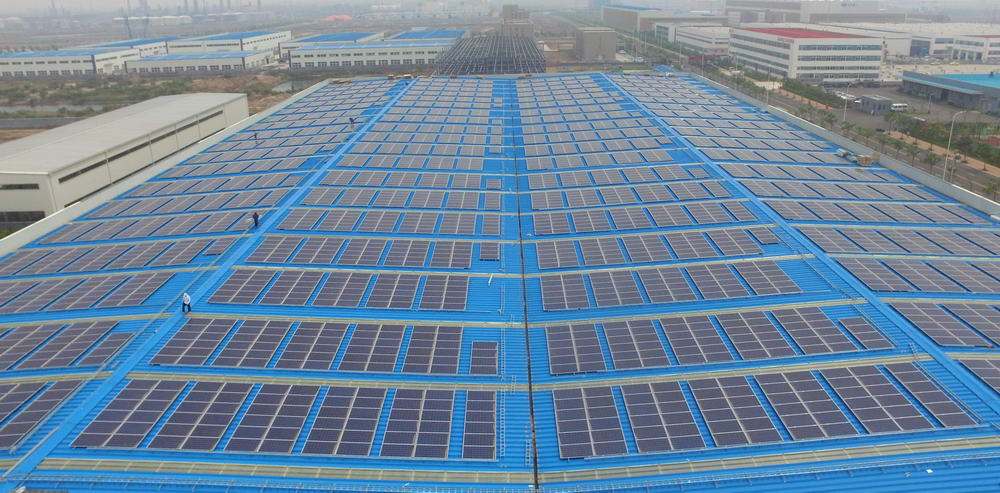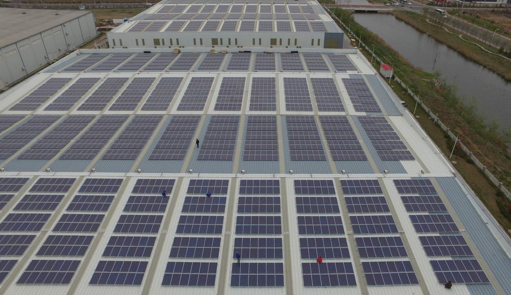 借此機(jī)會,青島華控能源牽手青島高新區(qū)內(nèi)的科捷機(jī)器人和佳友機(jī)械廠,在其房屋頂建設(shè)了光伏發(fā)電項(xiàng)目作為試點(diǎn)。一塊塊一人多高的矩形太陽能板均勻的排列在廠房屋頂,十分規(guī)整,科技感十足,這就是光伏發(fā)電裝置。太陽能板平鋪在廠房屋頂既節(jié)約了空間,同時(shí)也可以讓太陽能板充分接受陽光照射。