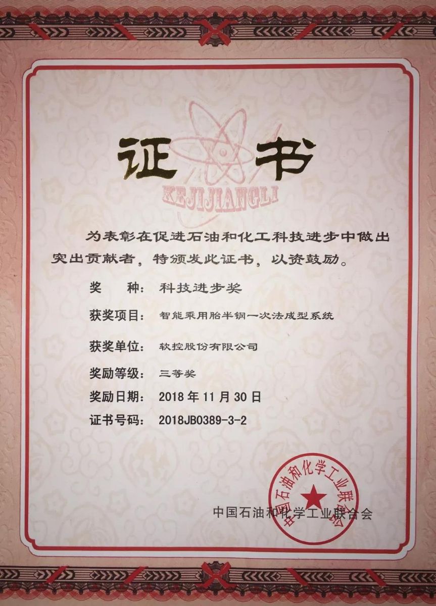 12月3日,由中國石油和化學(xué)工業(yè)聯(lián)合會主辦的全國石油和化工科技創(chuàng)新大會在北京隆重召開。大會隆重表彰了2018年度全國石油和化工科技進(jìn)步獎項目,軟控股份有限公司“智能乘用胎半鋼一次法成型系統(tǒng)”榮獲中國石油和化學(xué)工業(yè)聯(lián)合會科技進(jìn)步三等獎。