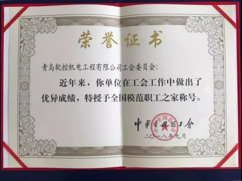 近日,中華全國(guó)總工會(huì)下發(fā)了《關(guān)于表彰“全國(guó)模范職工之家”的決定》,軟控機(jī)電工會(huì)榮獲“全國(guó)模范職工之家”榮譽(yù)。