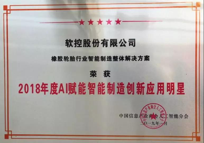 1月20日,由中國信息產(chǎn)業(yè)商會人工智能分會組織評選的2018年度信息產(chǎn)業(yè)創(chuàng)新發(fā)展明星(人工智能方向)企業(yè)名單揭曉,軟控股份有限公司憑借橡膠輪胎行業(yè)智能制造整體解決方案從眾多參評廠商的產(chǎn)品方案中脫穎而出,榮獲“2018年度AI賦能智能制造創(chuàng)新應(yīng)用明星”。