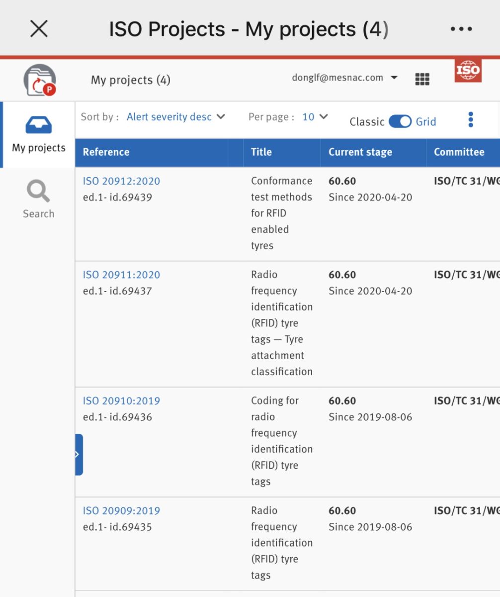 輪胎用RFID電子標(biāo)簽四項(xiàng)國際標(biāo)準(zhǔn)于2015年10月正式立項(xiàng),由國際標(biāo)準(zhǔn)化組織ISO/TC31(輪胎、輪輞和氣門嘴國際標(biāo)準(zhǔn)化技術(shù)委員會)下設(shè)的WG10“RFID tyre tags”工作組負(fù)責(zé)制定;工作組由來自中國、法國、意大利、美國、英國、德國、日本、韓國、芬蘭、加拿大、比利時(shí)、泰國、荷蘭、奧地利、阿拉伯聯(lián)合酋長國等國家相關(guān)企業(yè)單位的60余名專家組成。2015年10月至今,WG10工作組先后在布魯塞爾、三亞、馬賽、西雅圖、羅馬、東京、格林維爾、青島等地方召開8次全球工作會議,若干次工作組網(wǎng)絡(luò)會議,討論標(biāo)準(zhǔn)內(nèi)容,解決各方分歧,四項(xiàng)國際標(biāo)準(zhǔn)分別并先后在全球范圍內(nèi)完成CD(委員會階段)投票,DIS(國際標(biāo)準(zhǔn)草案)投票,F(xiàn)DIS(最終國際標(biāo)準(zhǔn)草案)投票,最終形成統(tǒng)一意見。繼2019年8月份,ISO 20909:2019 Radio frequency identification (RFID) tyre tags,ISO 20910:2019 Coding for radio frequency identification (RFID) tyre tags兩項(xiàng)國際標(biāo)準(zhǔn)發(fā)布后,ISO 20911:2020 Radio frequency identification (RFID) tyre tags-Tyre attachment classification, ISO 20912:2020 Conformance test methods for RFID enabled tyres兩項(xiàng)標(biāo)準(zhǔn)于2020年4月20日發(fā)布。目前,ISO/TC31/WG10工作組承擔(dān)的輪胎用RFID電子標(biāo)簽四項(xiàng)國際標(biāo)準(zhǔn)已經(jīng)全部發(fā)布。