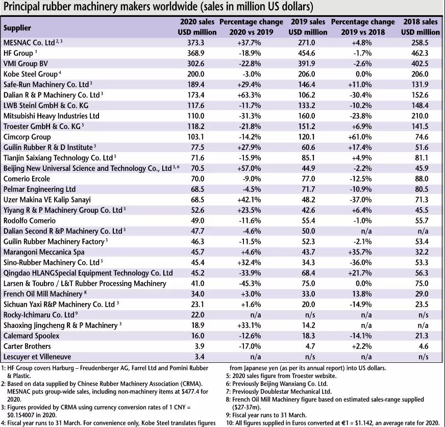 最新出版的歐洲橡膠雜志(European Rubber Journal) 5/6月刊更新了2020年全球橡膠機械行業(yè)企業(yè)的銷售收入排名,軟控(MESNAC)位居第一。